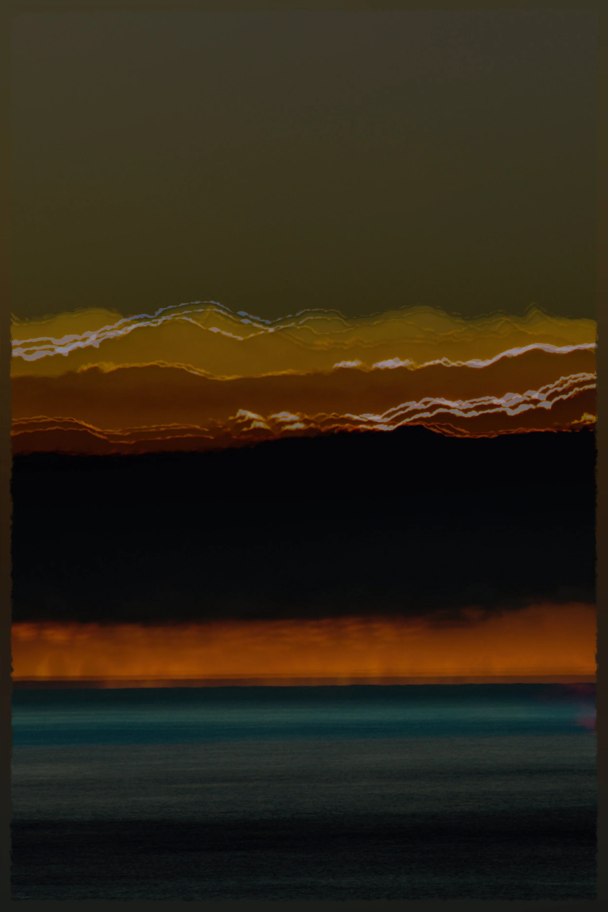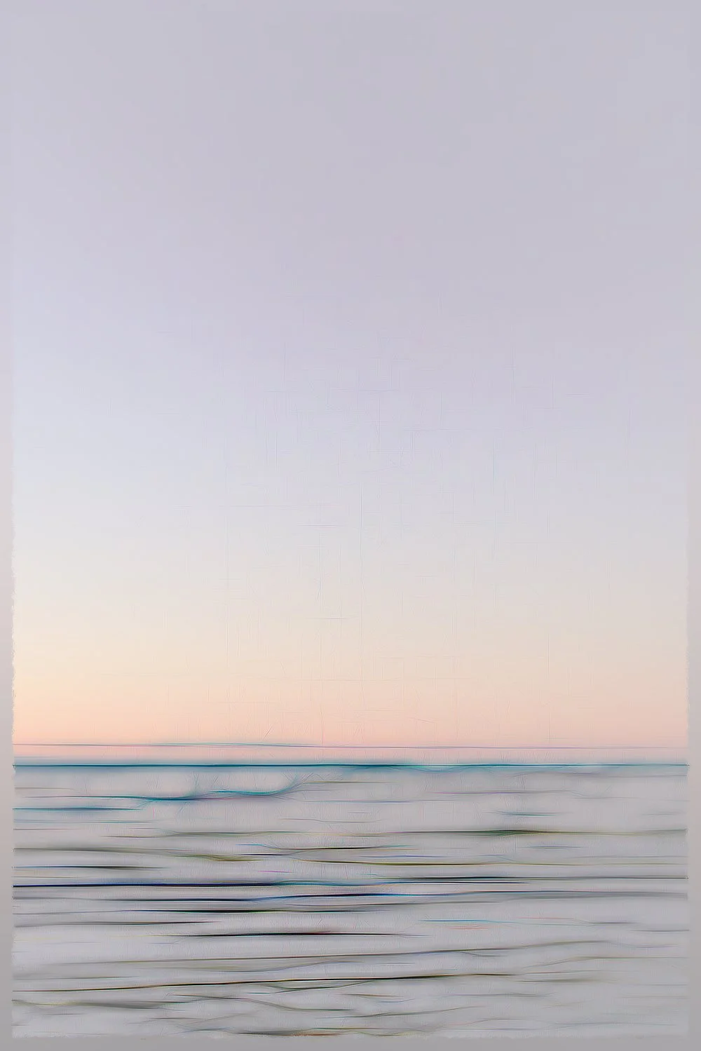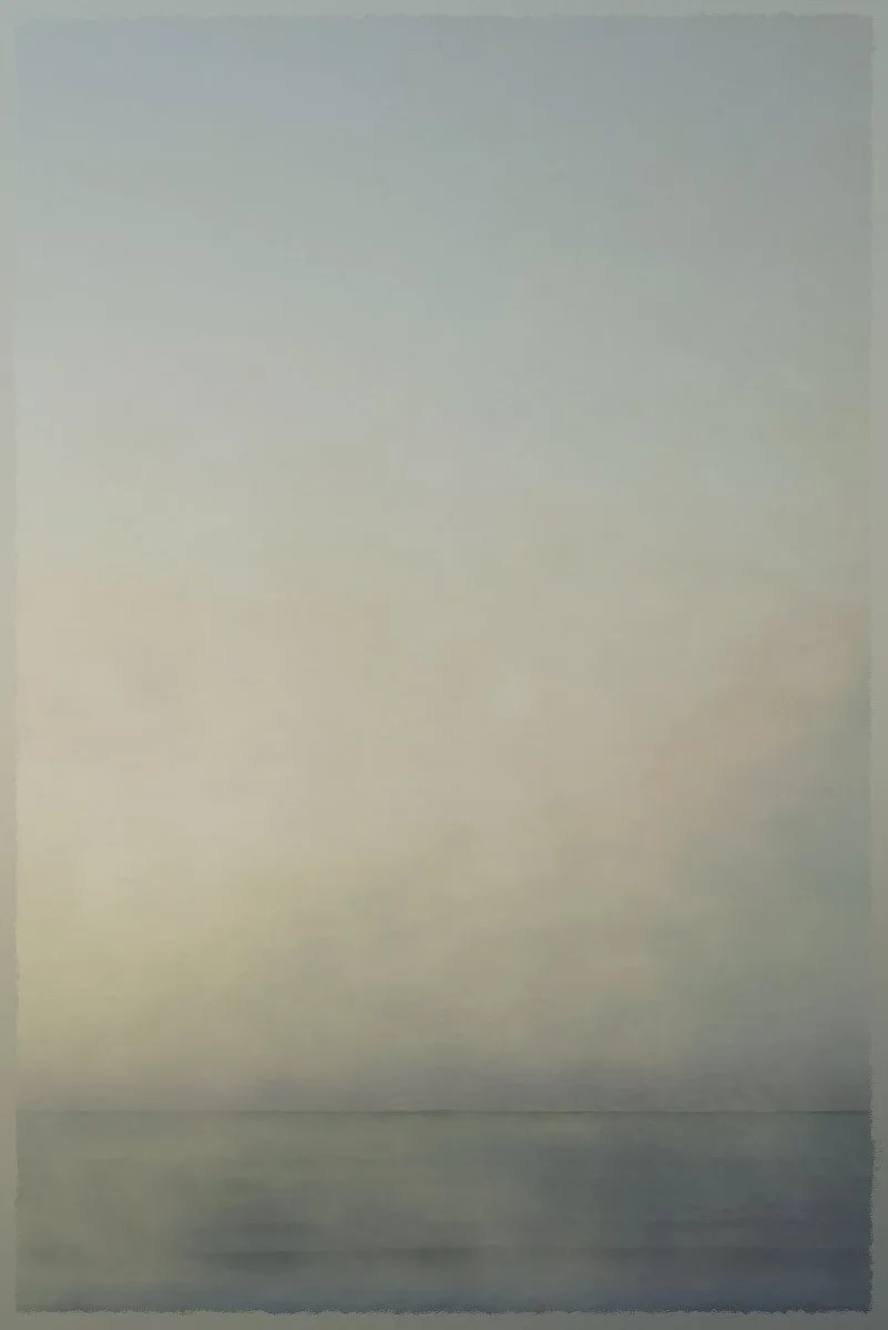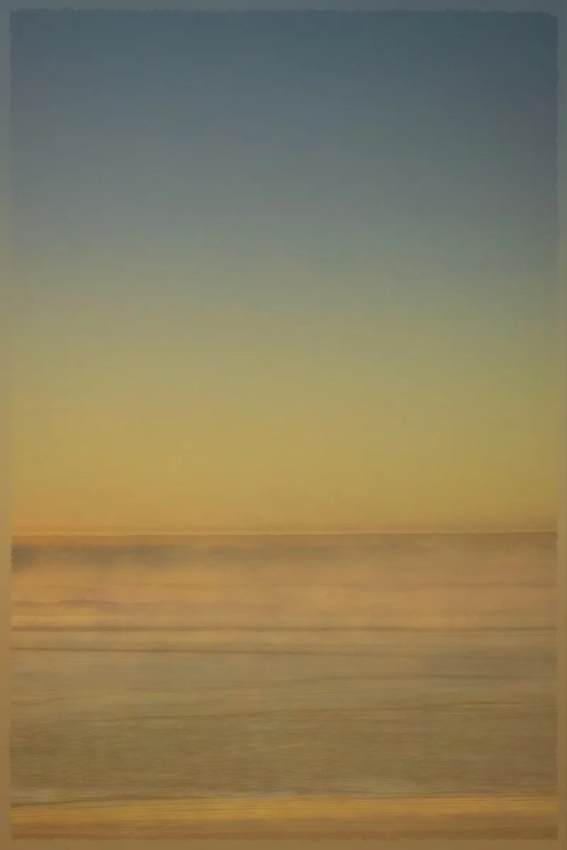 This series traces the delicate edge where sea meets sky, and where light, sea, clouds and horizons dissolve or come into sharp focus. Each image is made up of 5-15 exposures taken over a short period (20 minutes at most), usually around dawn and dusk. These are stacked within Affinity Photo software. The stacks’ output settings (e.g. ‘Range’, ‘Outliers’, ‘Variance’), which are normally used for image diagnostics, are here used for aesthetic effects in their own right. This adds depth and experimental changes in colour and texture.